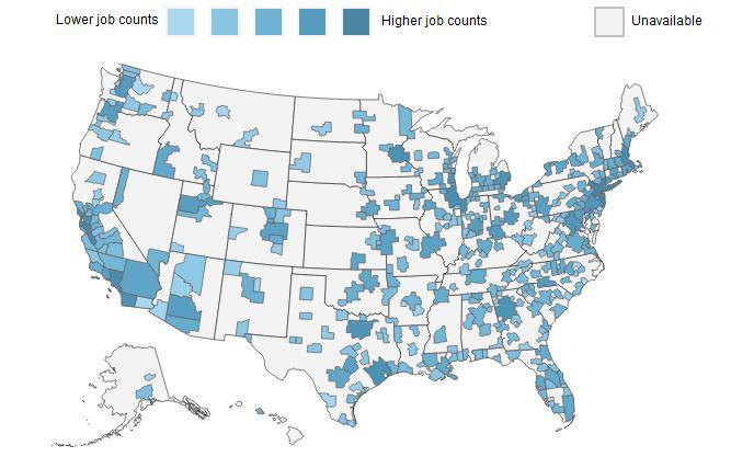 另一个惊喜,我们所在的工作定位。我们以为我们会看到高广告量在大湖,底特律,明尼阿波利斯,和克利夫兰地区位于附近。然而,纽约地铁地区实际上导致美国制造业的招聘需求。超过9000的工作是登在纽约地区七月。洛杉矶和圣若泽看到的第二和第三最高的要求。企业移动工作到美国其他地区?或是技术工作动东、西纽约和硅谷的科技中心 卧式胜游(中国)