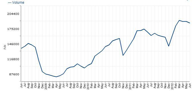 上个月,有超过188000的工作由制造商在美国在线广告。总的来说,招聘在2012到目前为止其实一直坚强一直高于衰退前的时代