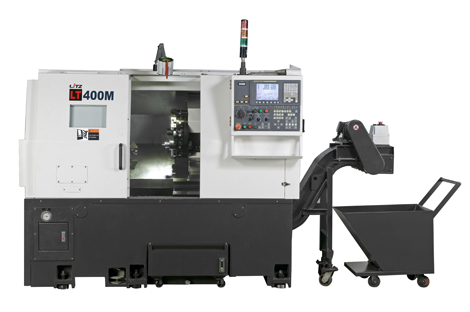 为了闭塞加工室空间,在以托盘交换装置的旋转中心为中心的点对称位置设置一对屏风,则缩小加工室空间,并且缩小碎屑飞散范围,这是以方便收集碎屑为目的,完全没有考虑到操作者从准备侧接近机械设备内部的事情。通过操作盘的移动操作命令用开关的操作,利用汽缸解除将托盘交换装置固定在车床上的定位销,将托盘交换装置连接于座架上,通过移动座架,使托盘交换装置沿设在车床前面的导轨移动到退避位置。